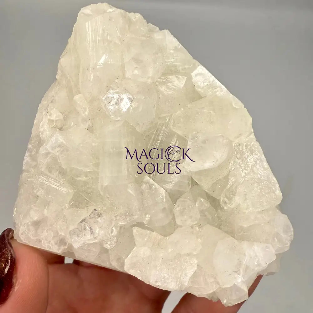 Natural Apophyllite crystal cluster sourced from Maharashtra, India. Known for its high clarity and reflective luster, this specimen supports spiritual connection, energy clearing, and intuitive development. A beautiful addition to any healing space or mineral collection.