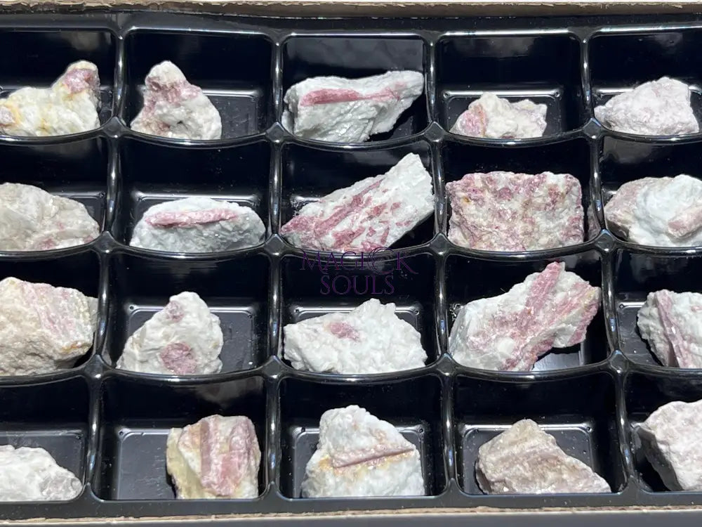 Pink Tourmaline Crystals (24 Pcs) Box Flat Bulk Wholesale Lot Rough Raw Stones Gemstones