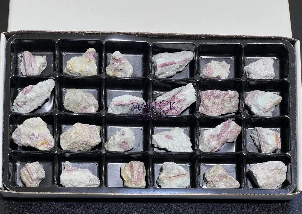 Pink Tourmaline Crystal Rough Raw Stones Assorted Box Flat