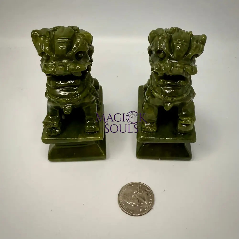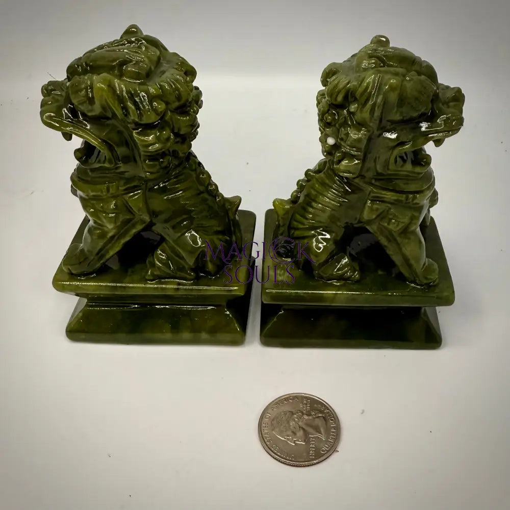 Protective Chinese Foo Dog Jade Carving Pair - A Symbol of Good Luck and Protection