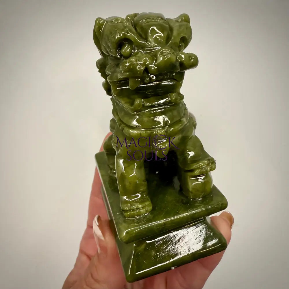 Elevate your space with this exquisite pair of Chinese Jade Foo Dogs, masterfully hand-carved from natural jade stone. Known as traditional guardians of prosperity and protection, these imperial lion statues symbolize strength, balance, and fierce loyalty. Each Foo Dog features intricate detailing—flowing manes, expressive eyes, and powerful postures—capturing the essence of ancient Chinese artistry.
