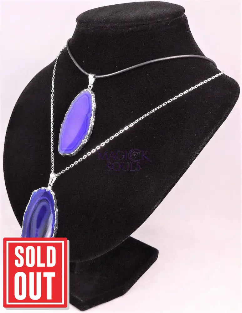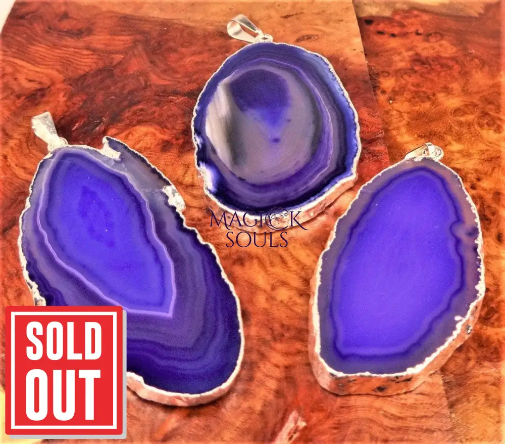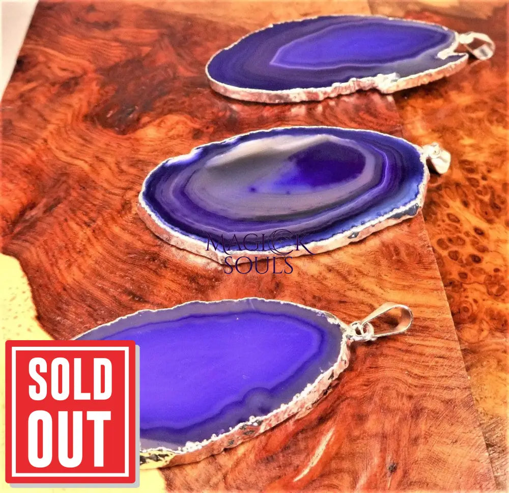 Purple Agate Slice Pendant (Silver Plated Edges) Polished Geode Slice Jewelry