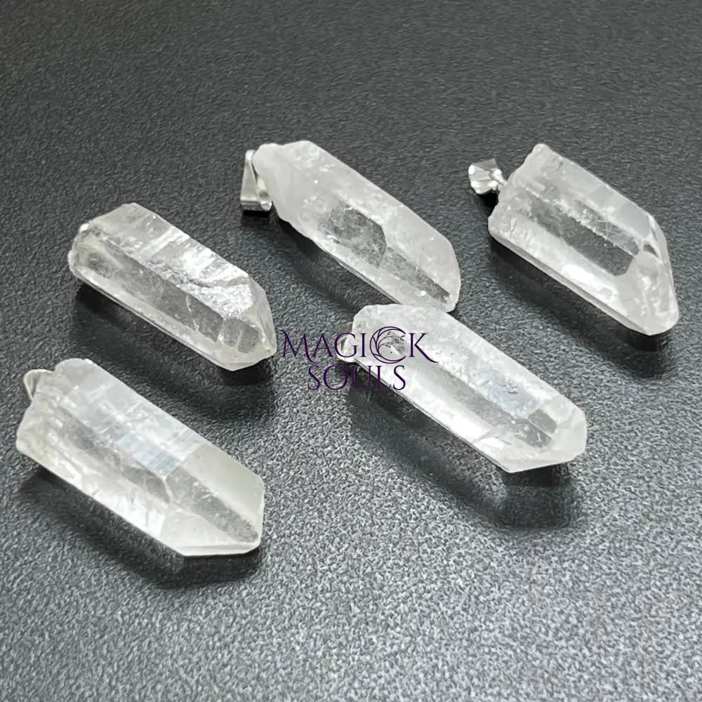 Raw Quartz Crystal Point Pendant Silver Plated Bail (Drilled Pin, Not Glued)