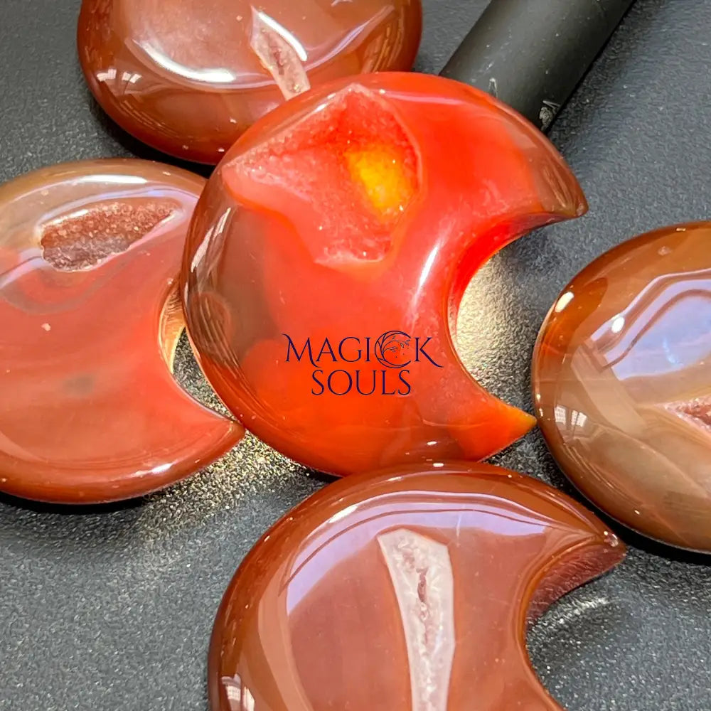 Red Sardonyx Crescent Moon Crystal Carving