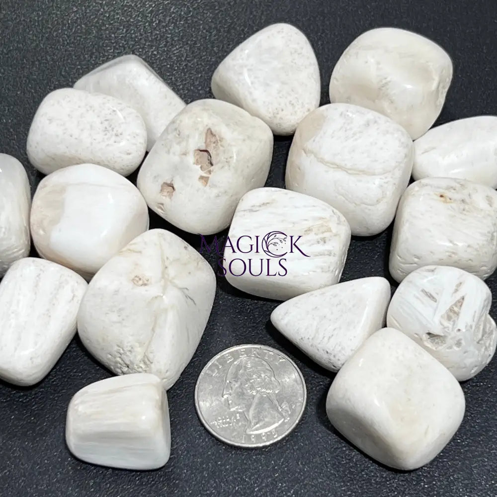 White Scolecite Zeolite Crystal Tumbled Stones (By The Piece Or Pound) Wholesale